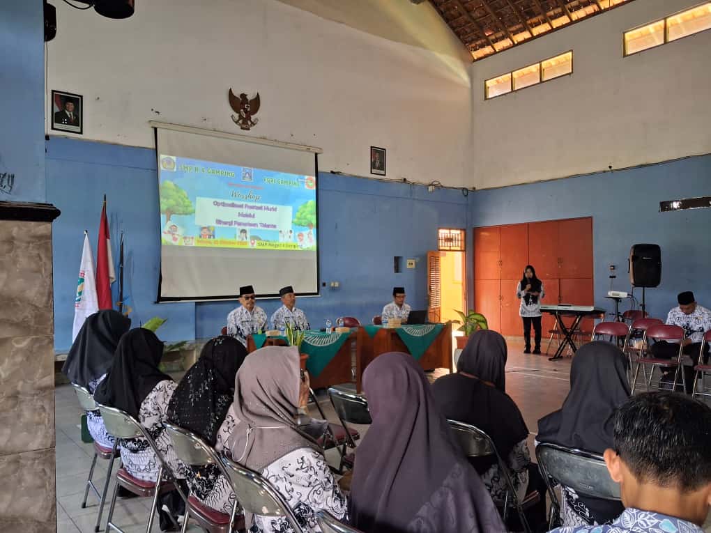 Dalam upaya meningkatkan kualitas layanan pendidikan dan pengembangan potensi peserta didik, SMP Negeri 4 Gamping berkolaborasi dengan PGRI Cabang Gamping menggelar kegiatan Workshop “Optimalisasi Prestasi Murid melalui Sinergi Pemetaan Talenta” pada Selasa, 21 Oktober 2025 bertempat di aula SMP Negeri 4 Gamping.